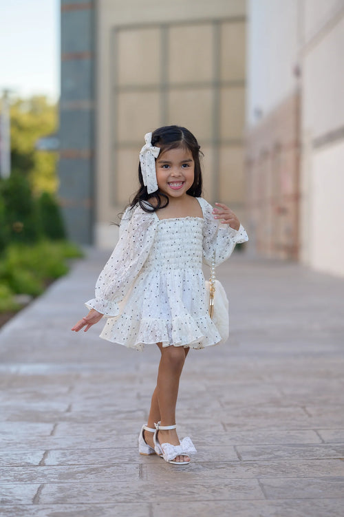 Brown Bow Embroidery Smocked Dress