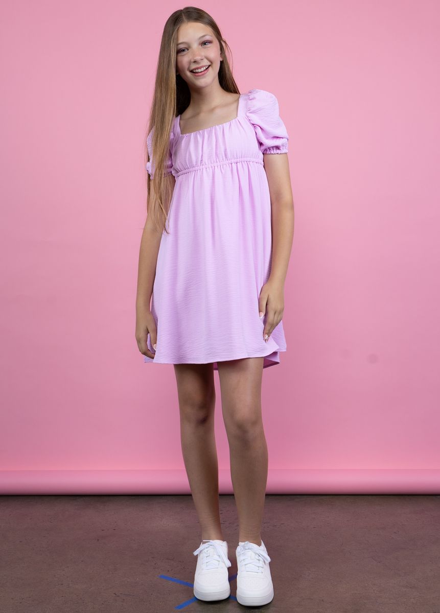 The PRESLEY Baby Doll Dress combines playful style with practical comfort for young fashion enthusiasts. Featuring charming puff sleeves and a distinctive crisscross back closure, this dress delivers that coveted trendy aesthetic teens and tweens adore. The elastic-backed skirt ensures a flattering, secure fit throughout the day, making it ideal for everything from casual outings to social gatherings. Perfect for effortless everyday wear, this piece seamlessly transitions from day to night while maintaining its cute, contemporary appeal.