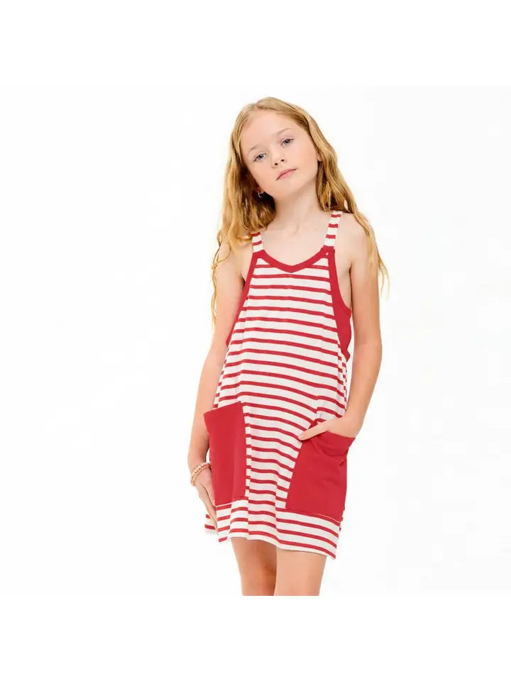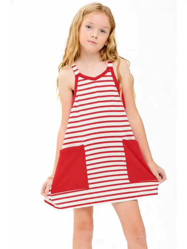 Striped Mini Red Dress With Inner Romper