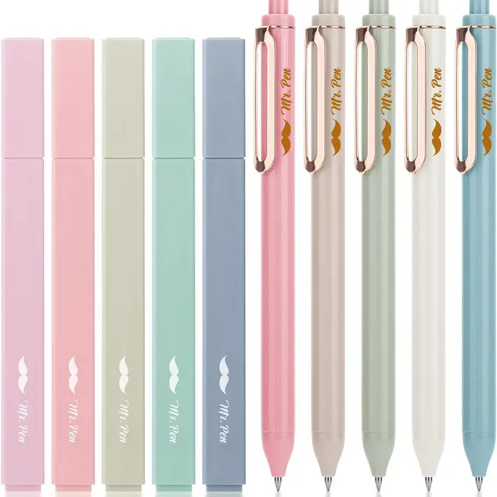 Mr. Pen highlighter and pen set includes 10 pieces, featuring 5 vibrant colored highlighters and 5 black gel pens, offering versatility for both writing and highlighting.