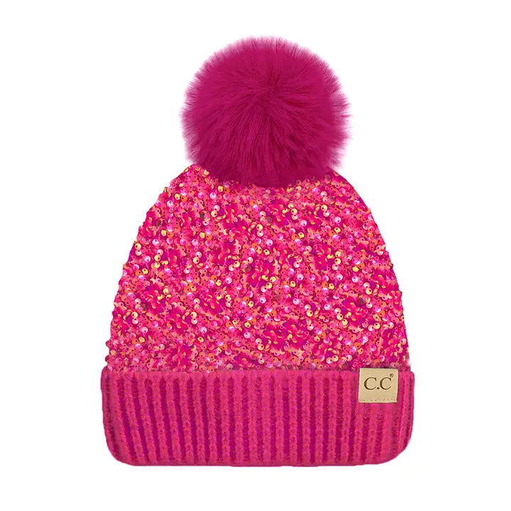 C.C Hot Sequin Fur Pom Beanie